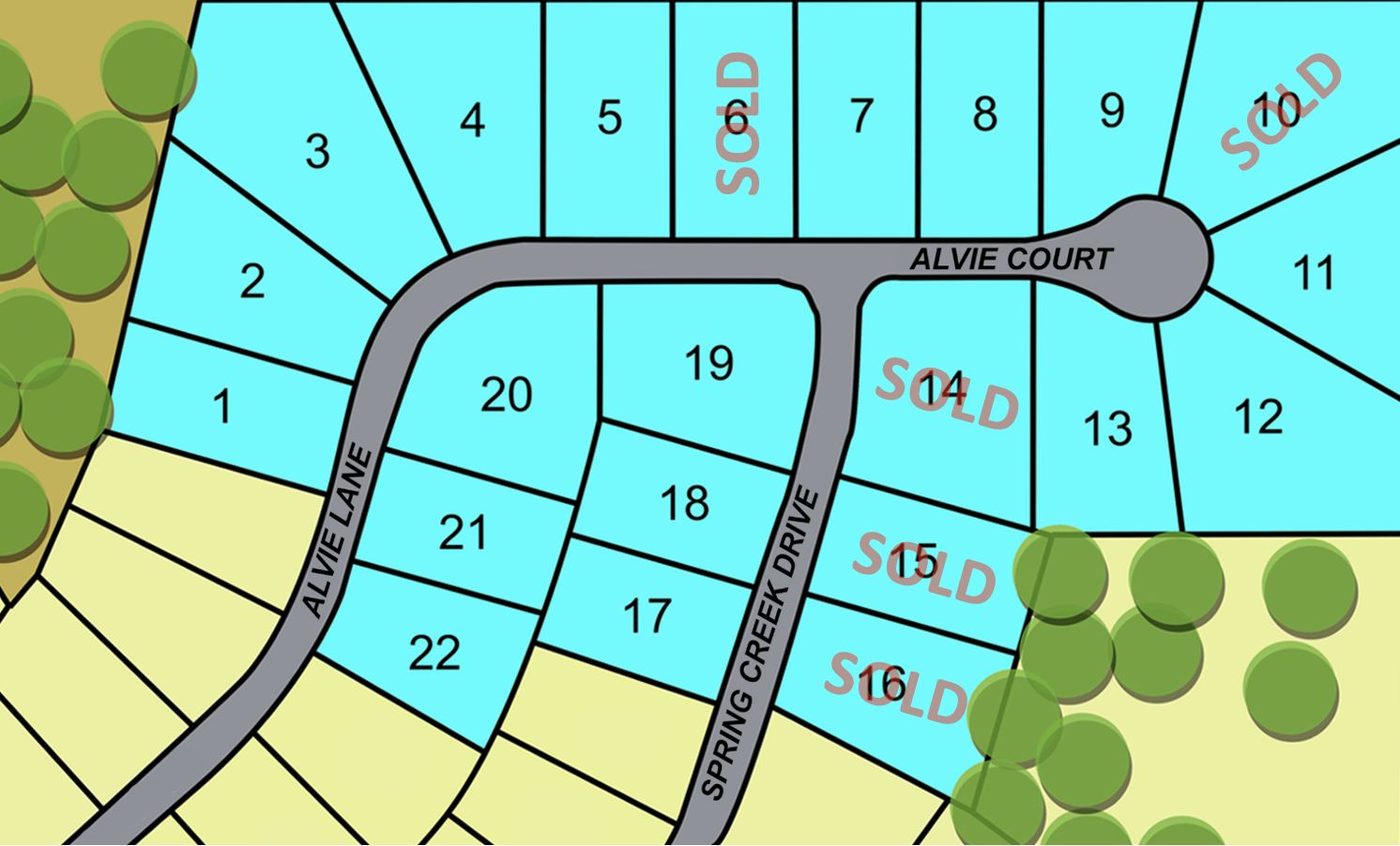 Lots range from 10,000 to 24,000 square feet.